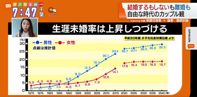 【画像】生涯未婚率、とんでもない勢いで上昇していた → → →