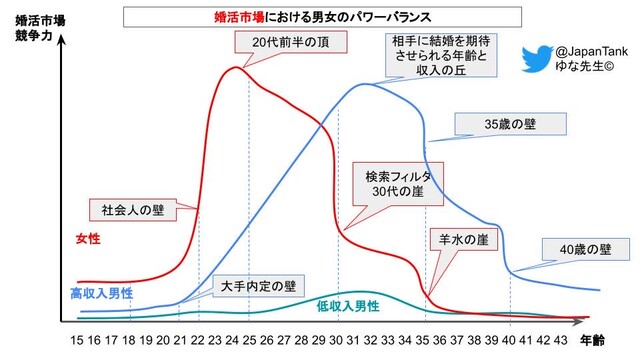 婚活市場の男女の価値推移を表した表が残酷過ぎると評判に → → →