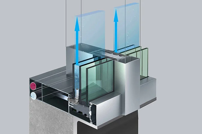 2層のガラスで挟んだ水を入れ替えることにより、夏は涼しく、冬は暖かい室内を提供できます。