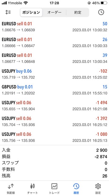 ポジションとったら、マイナス200円くらいでストップ決済かけておく