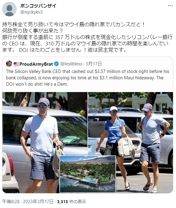 米中堅銀行シリコンバレー銀行(SVB)の経営破綻では、トップが破綻前に自社株を売り、約230万ドル(約3億円)の利益を得ていたことが発覚し、批判の声が上がっている。バイデン米大統領は17日、銀行が破綻した場合、経営陣から報酬や自社株売却益を没収するなど、当局による責任追及の権限を強化するよう議会に求めた。