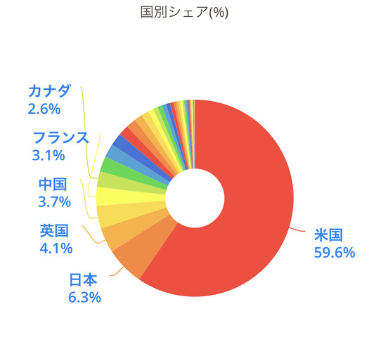 アメリカさん、世界の株の時価総額の60%を占めてしまう。歴史上ここまで世界征服した国あるのか?