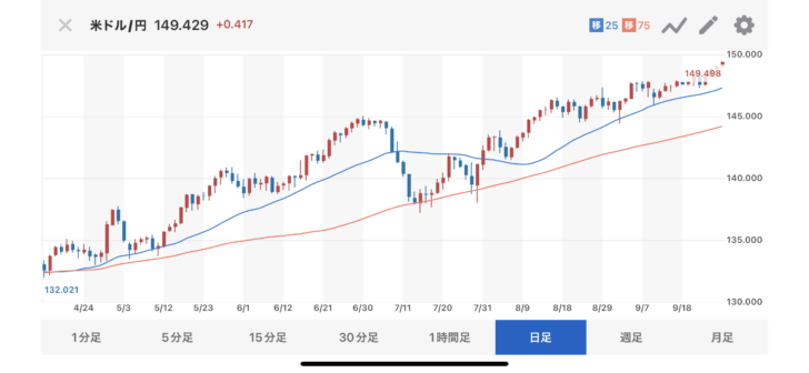 1: 2023/09/26(火) 17:08:48.85 ID:tC69lMHY26日の東京外国為替市場で円が対ドルで下落し、一時1ドル=149円台を付けた。2022年10月以来11カ月ぶりの円安・ドル高水準。25日の米債券市場で米長期金利が一時4.54%と16年ぶり高水準に上昇し、幅広い通貨に対してドル買いが膨らんだ。