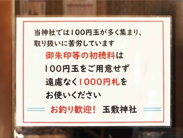 神社を維持するために、1円とか入れないで欲しい、っていうお願いを聞いて、