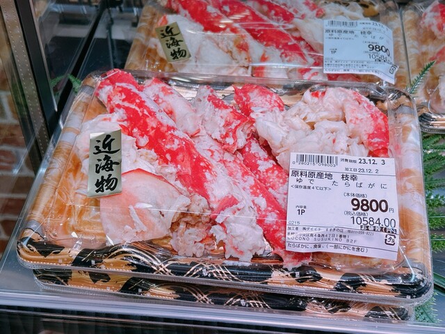 広島と山口、島根県の量販店に売り場を持つ鮮魚店のヤマスイ(西区)も商機と捉える。同社によると、タラバガニやズワイガニの小売価格は昨季より3~4割安い。ベニズワイガニやトゲズワイガニなどの安価なカニのパックも約千円から並べている。「昨季は高騰と暖冬のダブルパンチでほとんど売れなかった。今年は売り場を倍にする」と巻き返しに意欲的だ。
