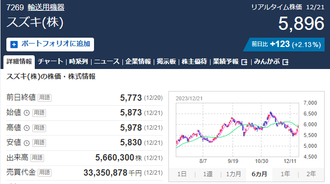 他自動車全面安だがスズキだけは爆上げの模様