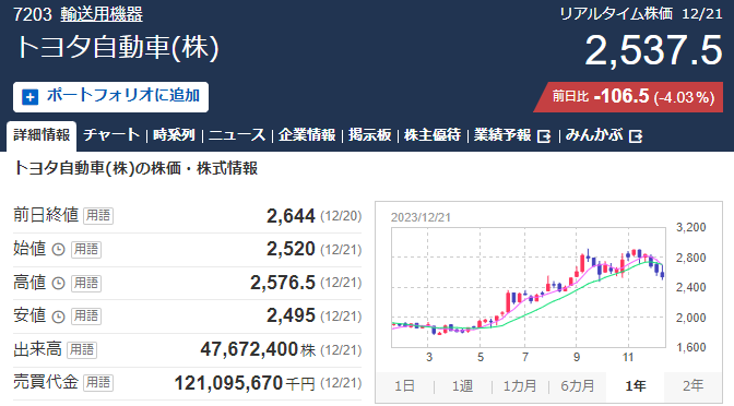 トヨタ株、ド派手に逝くwwwwww