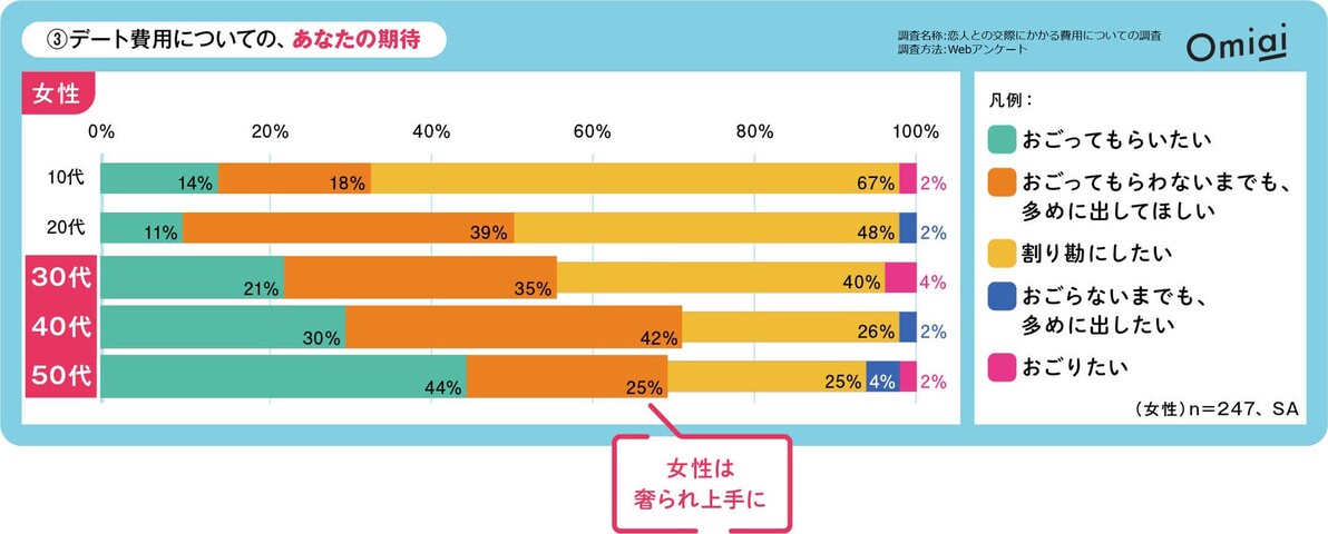 このままの割合で年代が上がっていって、最後は割り勘が9割位になるんではないかな。