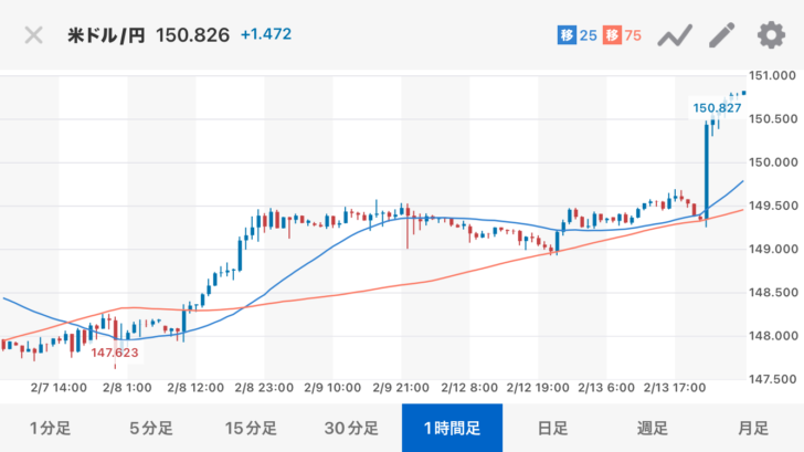 1ドル=150円台再び。米CPIの結果を受け利下げ期待後退⤵