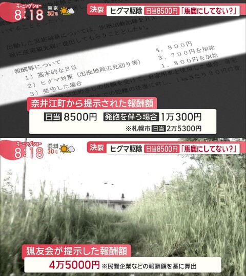 自分達の為にそんなにお金使えるけど、危険な目に合う猟師には8500円しか出せないのか。