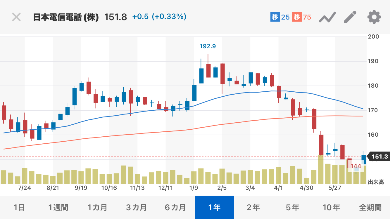 NTTは政府が保有している株を売っていくという方針だし、あと数年は低位っしょ