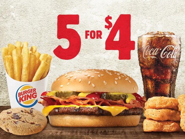 4ドルで、ベーコンチーズバーガー、スモールサイズのフライドポテト、4ピースのチキンナゲット、スモールサイズのドリンク、チョコレートチップクッキーが買える。