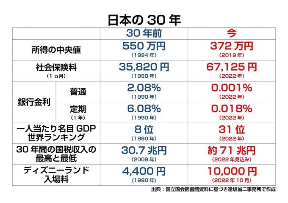 日本がこの30年間でどれだけ転落したのか一発でわかる図表が見つかる→