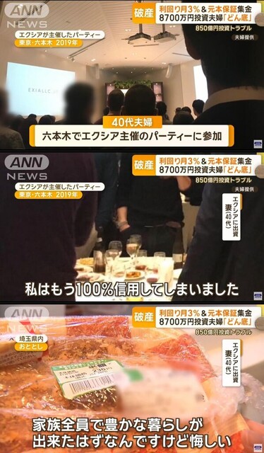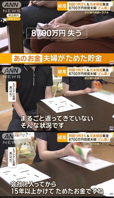 40代夫婦、月利3%(年利40%)のポンジ投資で8700万円失い咽び泣くwwwww