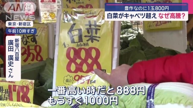 「キャベツが高くて我々も食べられず、ハクサイで代用したりするので。キャベツの代用でハクサイに切り替えて値段がつり上がったのか」