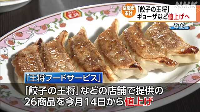 「餃子の王将」を展開する王将フードサービスは、今月14日から餃子やチャーハンなどの定番商品を値上げすると発表しました。