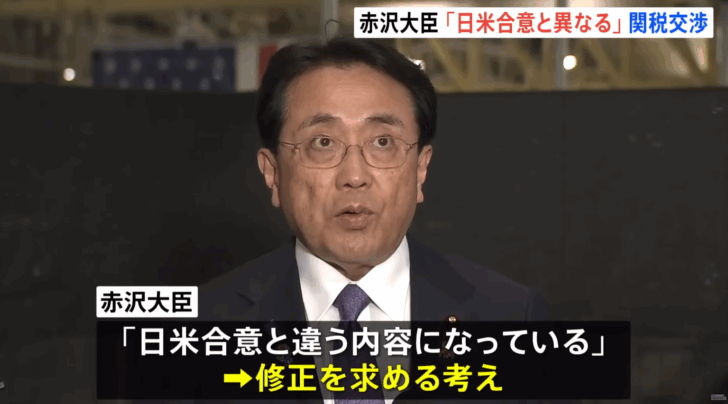 マイル赤沢「相互関税間違ってるの修正してくれるって言ってたよ!」
