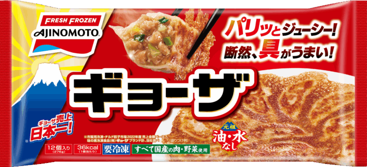 冷凍ギョーザ「市場規模が700億円に迫る人気者です。AJINOMOTO、満洲おいしいです😋」