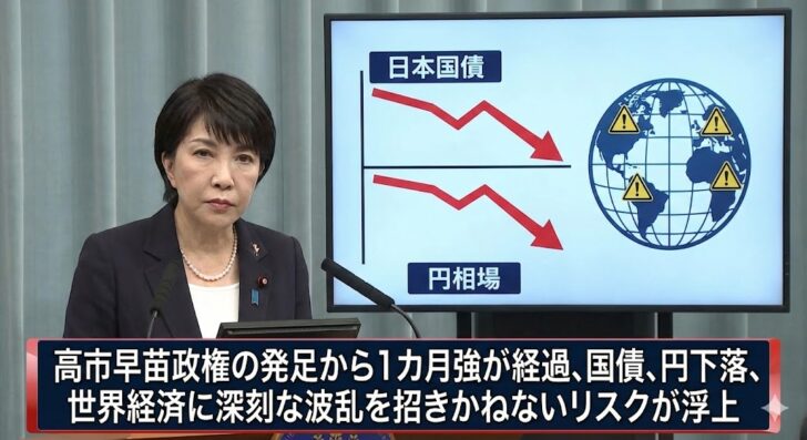 日本初の女性首相となった高市早苗政権の発足から1カ月強が経過、中国との対立を受けて株価が下落して円安が進行、日本国債の利回りも急騰するなど世界経済に深刻な波乱を招きかねないリスクが浮上している。