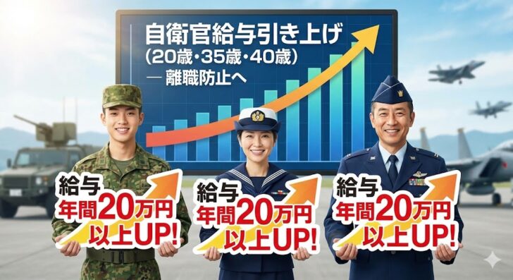 1: 2025/12/08(月) 18:49:47.97 ID:wTTHEEGm9政府は8日、自衛官の全年代の俸給(基本給)や初任給の引き上げを盛り込んだ防衛省職員給与法改正案を閣議決定した。定員割れが続く自衛官のなり手を確保し、中堅・ベテランの離職を防ぐ考えだ。