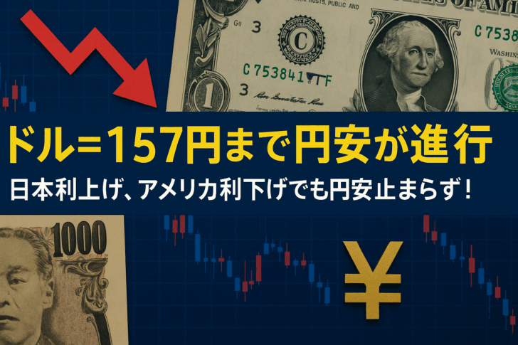 一時1ドル=157円まで円安が進行。日本利上げ、アメリカ利下げでも円安止まらず!