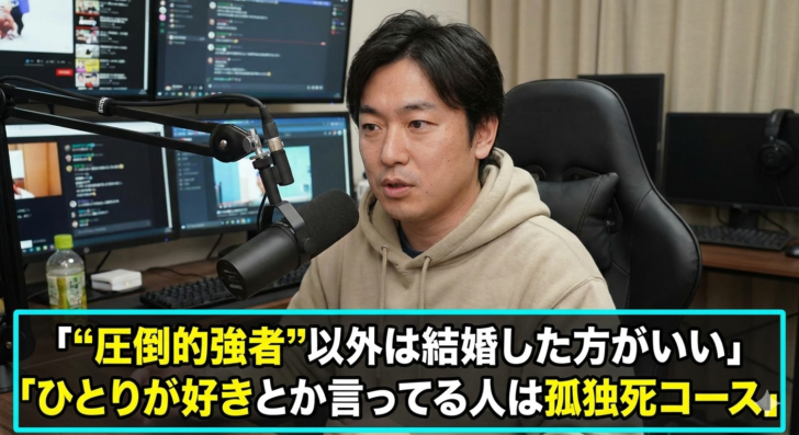 ひろゆき氏“圧倒的強者”以外は結婚した方がいいと持論「『ひとりが好き』とか言ってる人は孤独死コース」