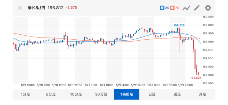 1: 2026/01/24(土) 05:52:49.22 ID:uiSChPqq9外国為替市場で円相場が一時、1ドル=155円台を付けて急激に円高が進んでいます。