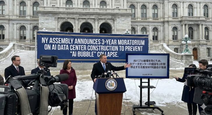 AIバブル崩壊を防ぐため、AIデータセンターの建設を3年間停止する法案をNY州議会が発表する。