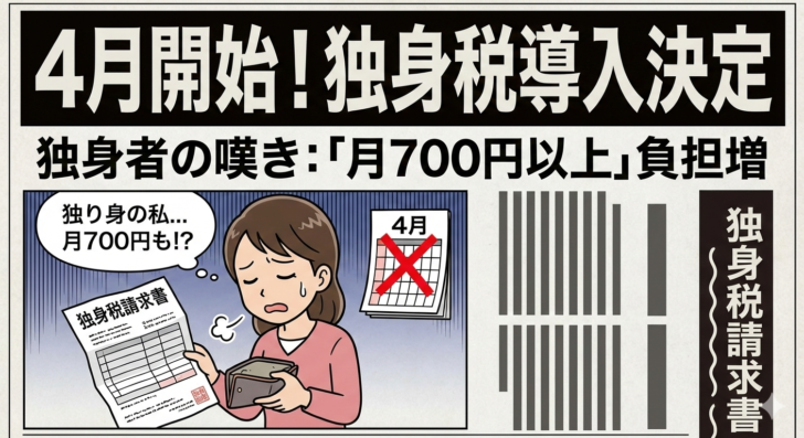 4月開始の独身税。独り身の私は「月700円以上」負担することになってしまうそうです。