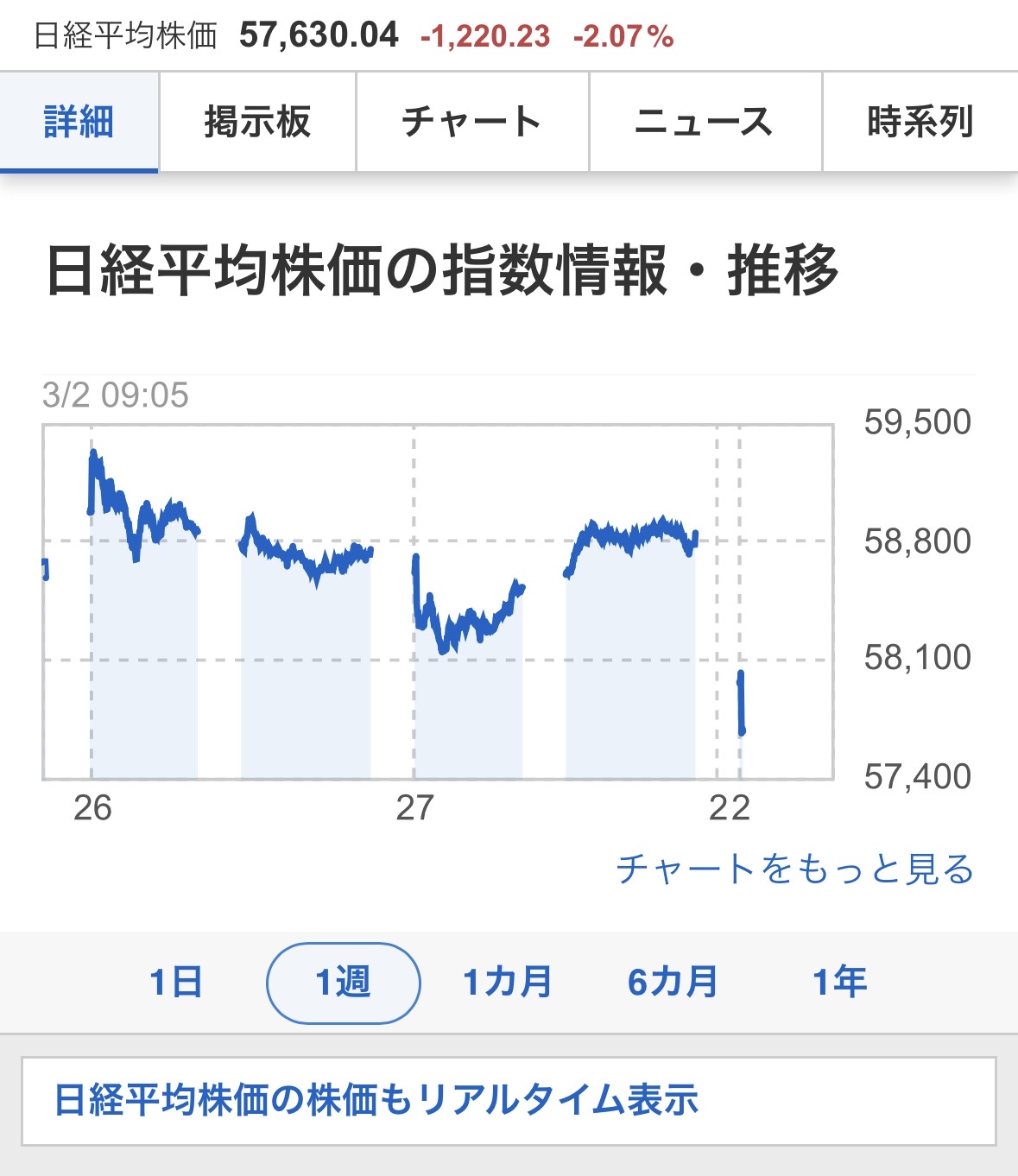 この状況で株価が上がるわけもなく、イランとアメリカの戦争は長期化が避けられないから、これから何年にもわたって株価が下落し続けるだろうね