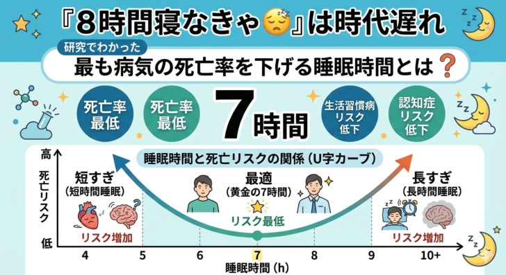 「8時間寝なきゃ😪」は時代遅れ、研究でわかった最も病気の死亡率を下げる睡眠時間とは❓