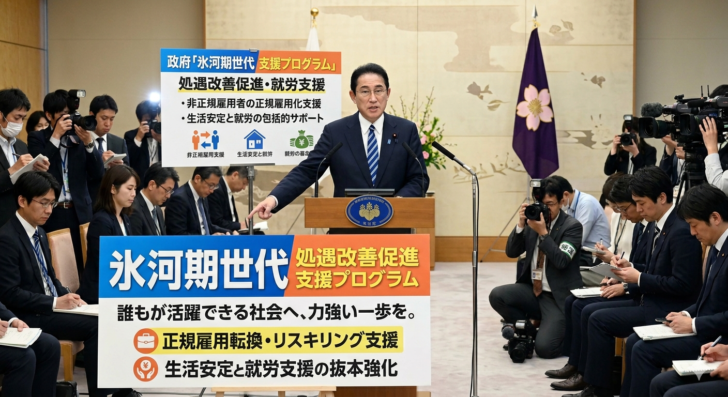 1: 2026/04/10(金) 20:05:17.26 ID:w4v9xnTU9政府は10日、バブル崩壊後の「就職氷河期世代」に対する支援プログラムを決定した。