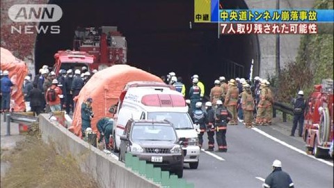 「トンネルの改修補強なんてやってられるか!!過去の自民が余計な公共事業をやったのが悪いんだ!!」