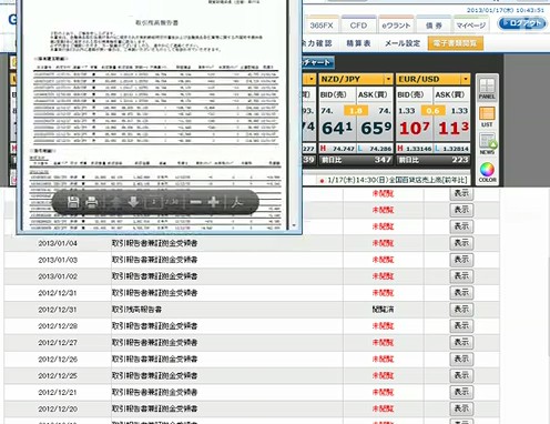 取引残高報告書のページにアクセスして、課税対象となるFXとバイナリーオプション(BO)の