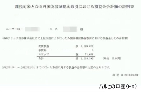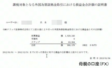 「損益金合計額の証明書」を公開。それぞれに関して、自分名義の口座と母親名義の口座があることを見せた。