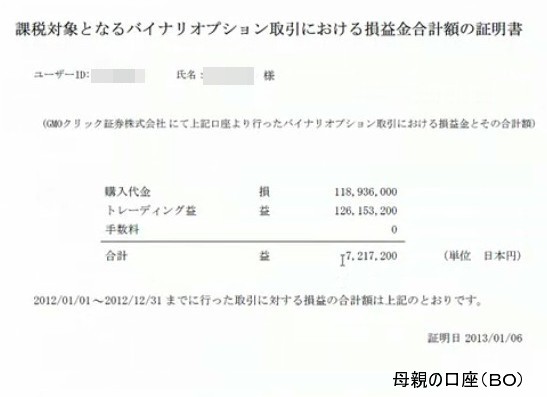 FXで約100万円損して、BOで約720万円の利益を得た。借名取引は違法行為だが、