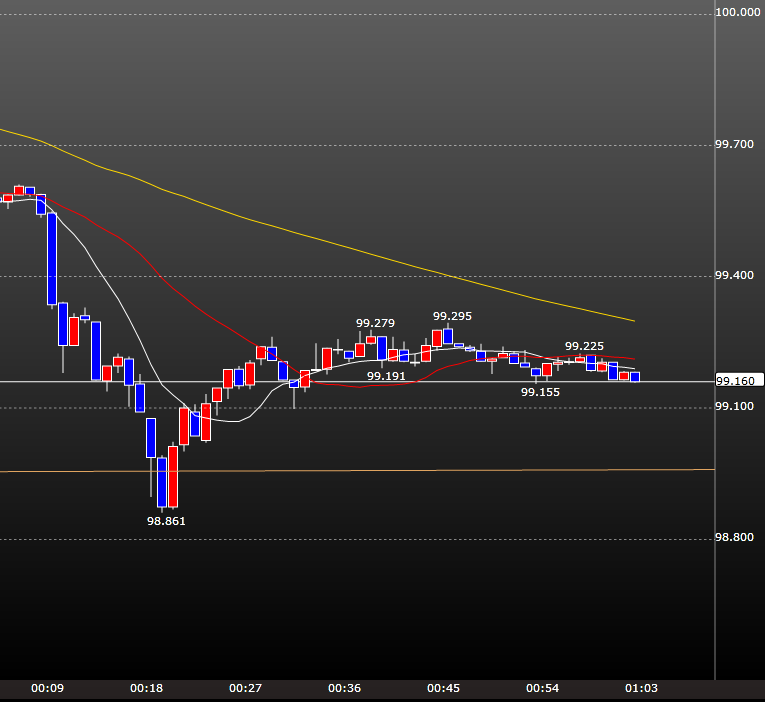 ドル円は下げを加速させており、98円台まで下落している。見切売りが加速している模様。