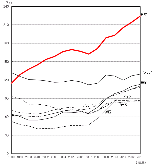 日本政府の借金は基本円建てだから名目上破綻はないよ(国内でお金がまわってる)
