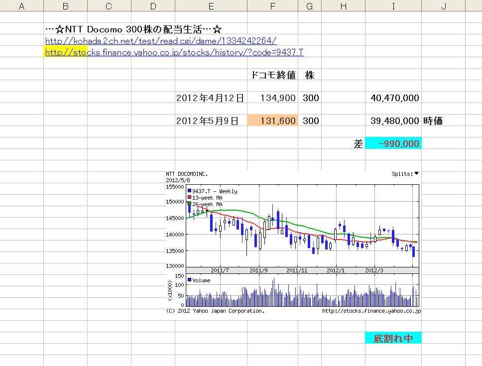ドコモだけでなく、業種違いの他の高配当銘柄も保有せねば・・・