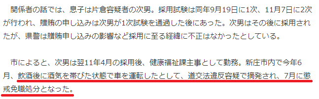 安心しろ。息子の退職は酒気帯び運転での懲戒免職らしい。