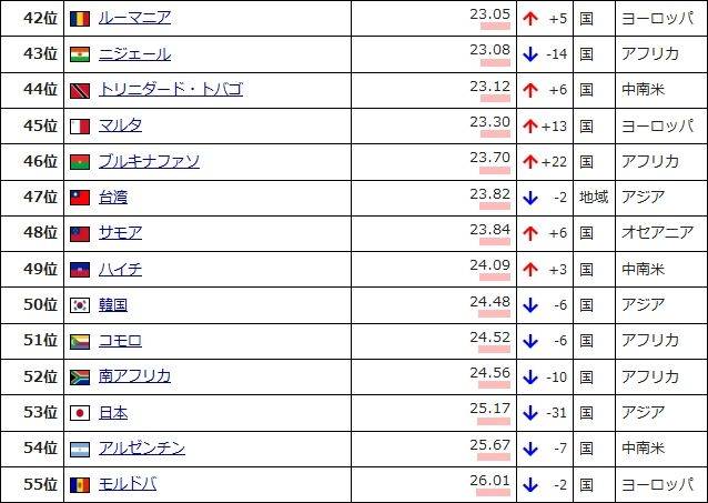 日本は前年の二十二位から急落し、五十三位という結果でした。