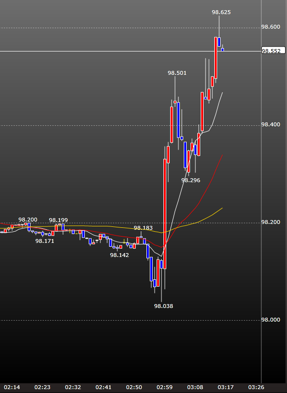 98.50円 売り厚め実需ほか・超えるとストップロス買い