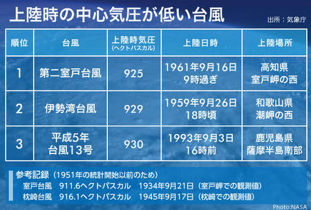 伊勢湾台風は上陸時920くらいだよ。上陸時895のこれに比べたら雑魚