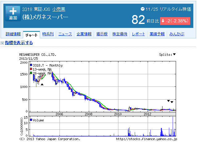 メガネスーパーの株価の10年間の推移見てみ・・・