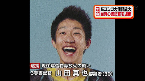 コンゴ日本大使館に放火し金庫から2,200万円強奪した容疑で外務省3等書記官、山田真也を逮捕!