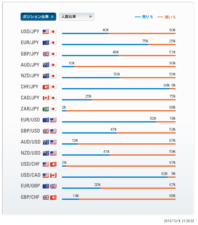 【FX】今夜22:15より11月ADP雇用統計結果発表。売買比率をみると約6割がロングで挑む模様。