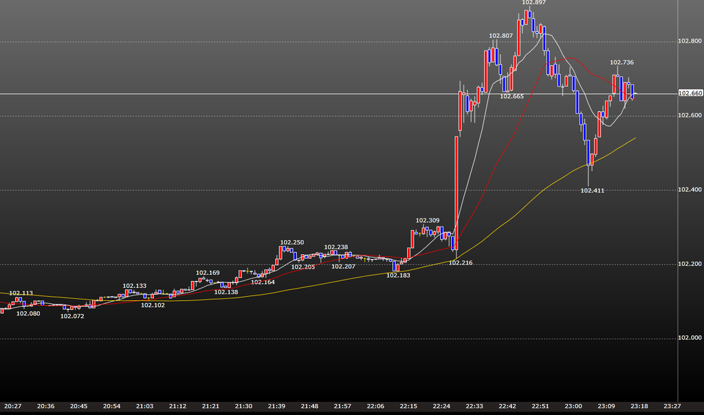 雇用統計の30分後にはヤンキー入場、その30分後にはダウ先生登場、その30分後にはミシガンとNYOPカット、その1時間後にはロンドンFIX
