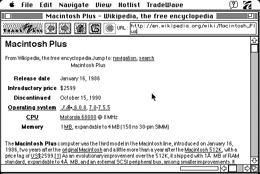 Jeff Keacherさんがインターネットに接続してみたのはCPUが8MHz、メモリが4MB・ハードドライブの容量が50MBのMacintosh Plus。