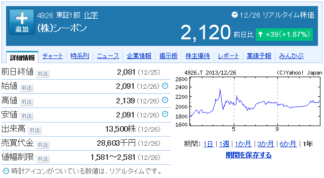 優待・配当狙いなら4926シーボンもいいぞ
