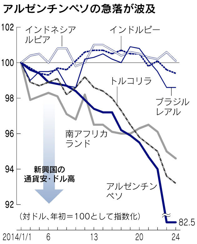 結局、新興国は新旧切り替えで、ドル不足。バーナンは金融緩和縮小でダメ押し。イエレンは金融引き締め目指す。新興国反社の持つ金が暴落させるから。